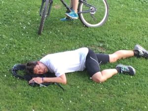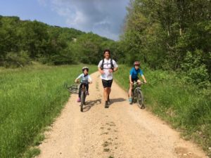 It was a beautiful route, but it did remind me of the importance of checking the vertical extent of running route! After 1250m of climbing, the support of half of my 'brats on bikes' was welcome as I crossed the Pont Valentré into Cahors. Not as welcome as the shade of the tree in our garden though!"