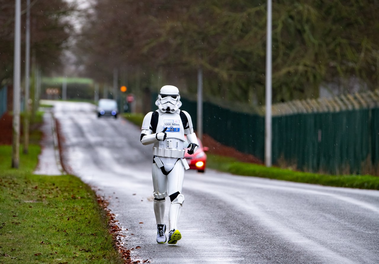 Having conquered numerous marathons and ultra runs as the Stormtrooper, Jez decided to go even bigger than he’d gone before in 2020. He set himself the challenge of completing a 1000-mile challenge, including 284 of those miles in the Afghanistan heat at 6000 feet while on deployment (in full costume, of course). In 2023, Jez undertook his final costume appearance in his beloved (and worn!) Stormtrooper outfit.