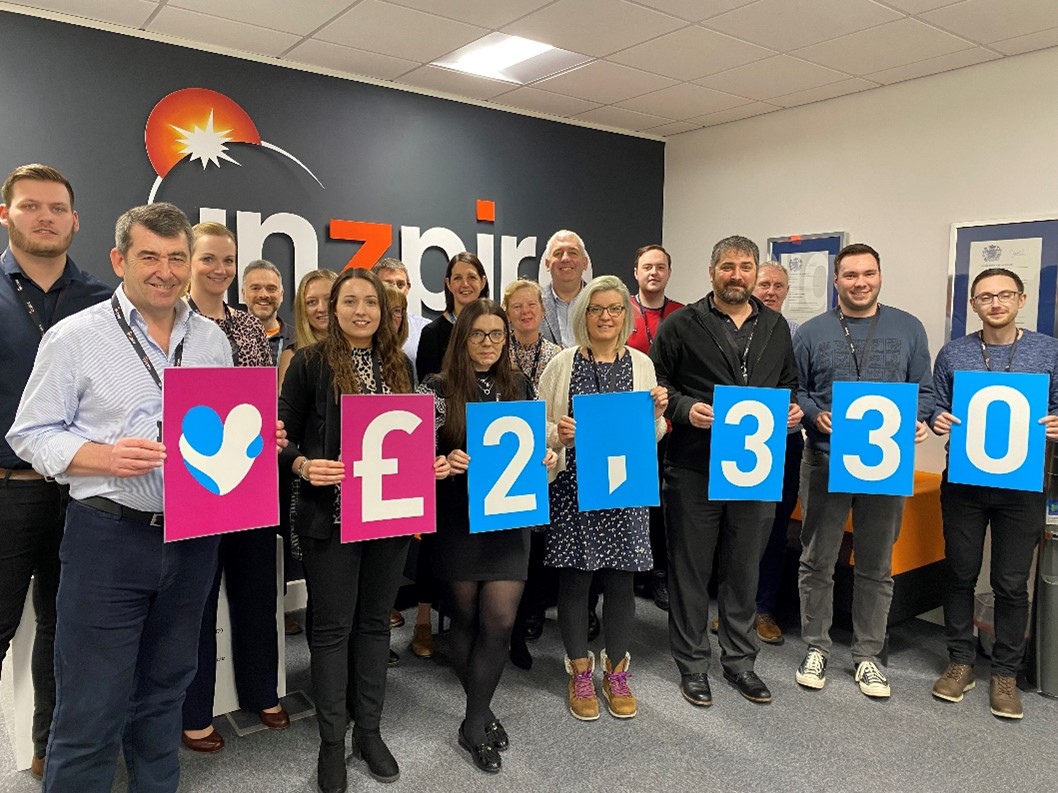 Inzpire employees raised a total of £2,330 for the Paediatric Intensive Care Unit at Nottingham QMC Hospital during the Best Companies survey