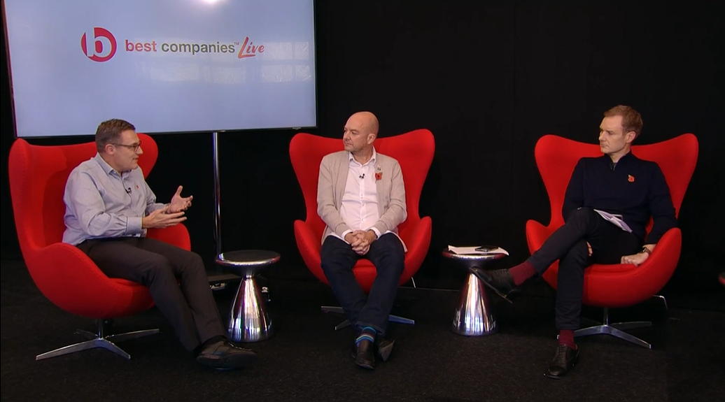 Inzpire’s People Director Rich Havercroft (far left) discusses Inzpire’s wellbeing strategy with host Dan Walker on Best Companies Live