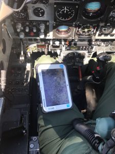 One of Inzpire's loaned GECO tablets on the knee of a 72 Squadron pilot in a tucano cockpit