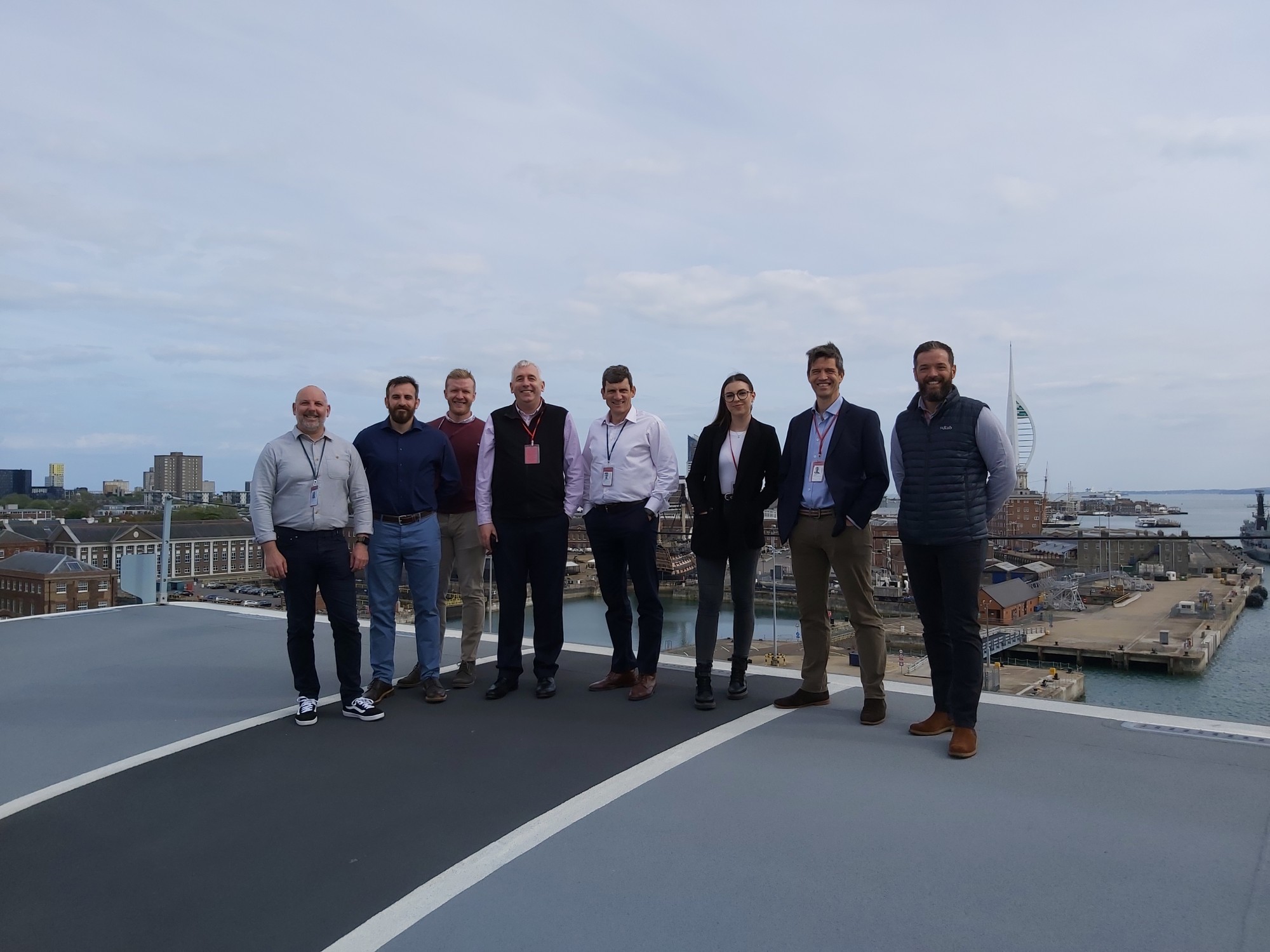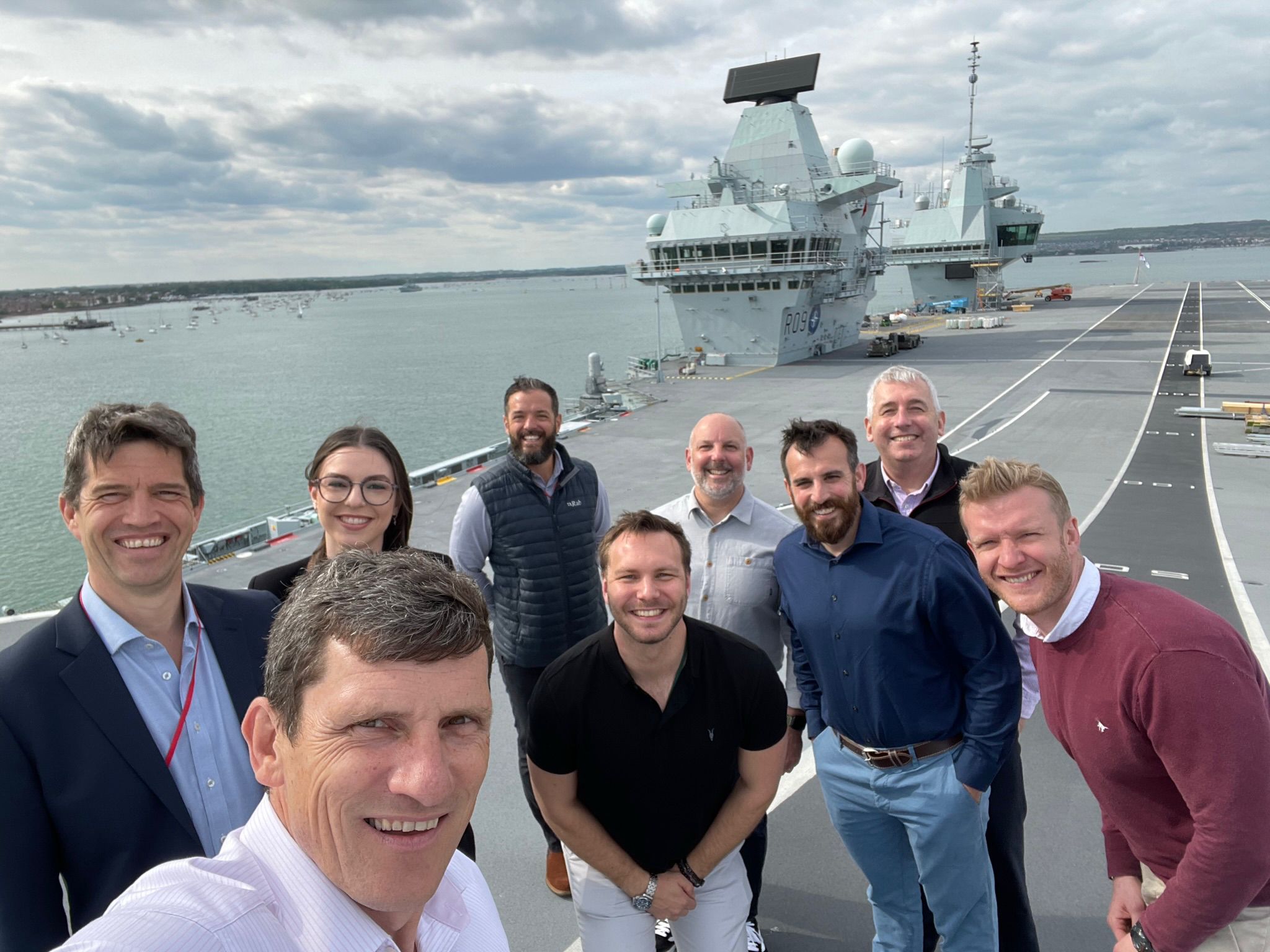 Members of Inzpire including CEO Hugh Griffiths (second from right) and Director of Operations Jonny Priest (second from left) on board HMS PRINCE OF WALES.