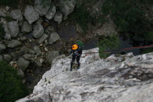 One of the most testing sections of the course for all the teams was the canyon. The top team were expected to be out in 10 hours and actually took 12, some of those behind took up to 16 hours and many teams elected to miss it in favour of a penalty as it was too dark, cold and daunting. The RAF team did not shy away from the challenge and tackled the beast, first with a via ferrata climb and 55m abseil. Inside the canyon the team were heading into darkness, and had to contend with pools of water, jumps into the murky unknown, and ‘polished rocks’.