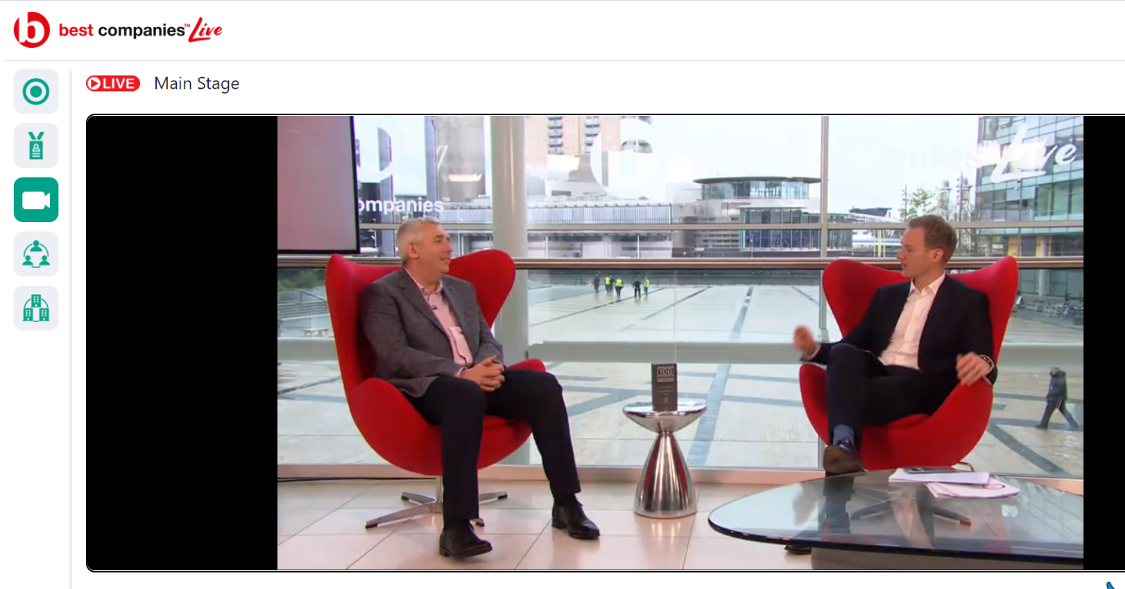 Hugh talking to Dan Walker about his thoughts on what makes a great leader during the Best Companies Live event