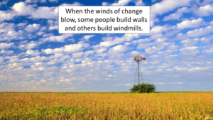 Internal resistance to innovative change is quite normal, natural and to be expected. Ultimately, we are all creatures of habit – habits formed from our past experience. Each one of us is actually a living history book of everything that has gone before in our lives. We have worn our own grooves and we are almost always happy in those grooves and a little reluctant to climb out of them. It is a fact of life that, when the winds of innovation or change blow, some people tend to build walls and some people tend to build windmills.