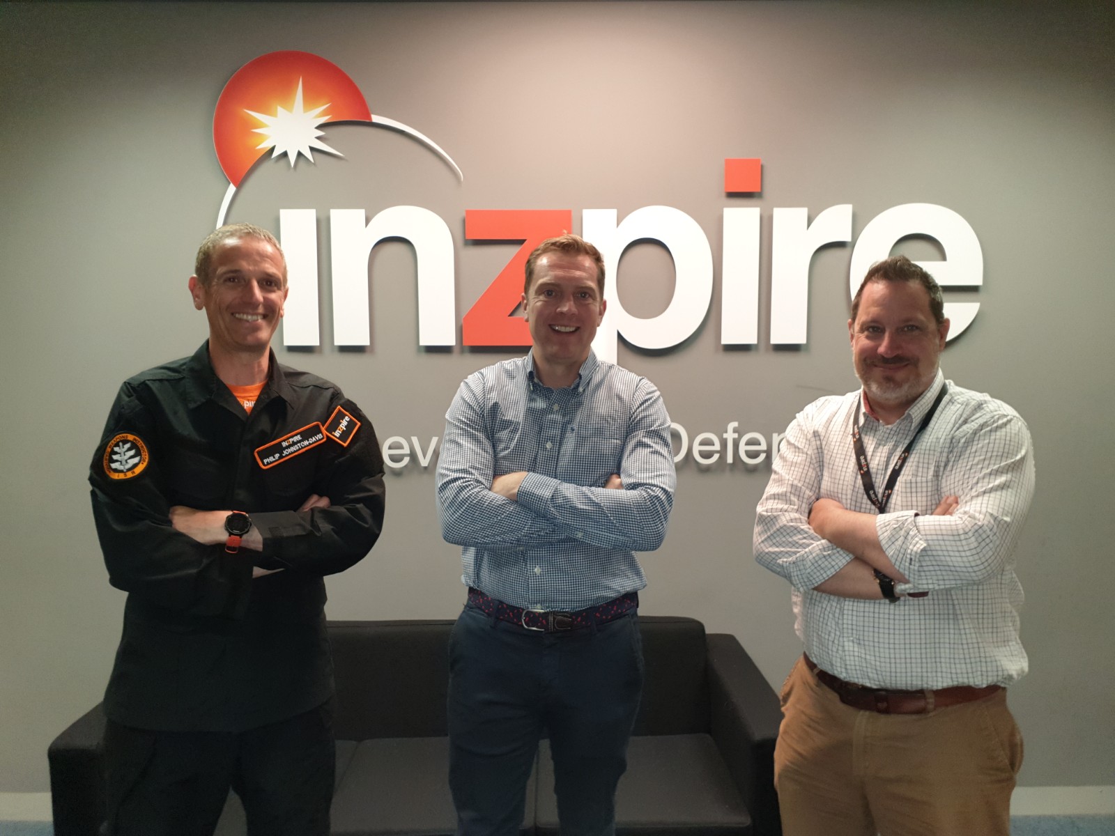 Phil Farmer (centre) being welcomed to Inzpire by Phil Johnston-Davies (left) and Andy Bain (right), both of Inzpire's ISR division