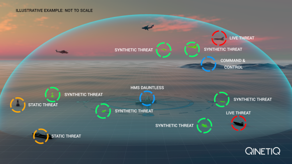 Our innovative approach combines live uncrewed targets - provided by QinetiQ's Target Systems business - with synthetic overlays. Our team uses the onboard training system to generate a swarm of simulated targets for the ship’s command team to counter. This creates a dynamic and challenging environment, with them facing over 100 different attack profiles while simultaneously undertaking missions and tasks within the exercise scenario. The emphasis on escalation and rules of engagement prepares the command team for the decision-making required in increasingly congested and complex areas of operation.